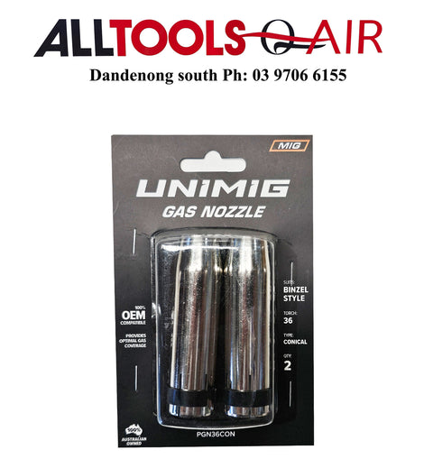 UNIMIG Binzel style gas nozzles are essential for MIG welding, they are designed to provide you with optimal gas coverage. These nozzles are built with a copper frame, steel brushed metal and chrome plating to ensure maximum durability and extended consumable life.