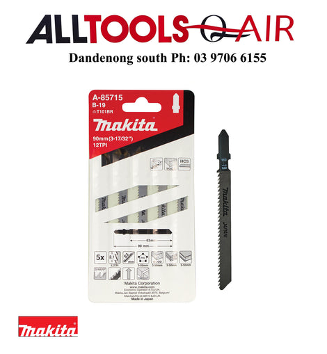 • Makita Wood Jigsaw Blade B-19 HCS 90mm x 12tpi / Fine Reverse / Wood & Laminate 3-50mm - 5 pack P/n A-85715 + $5.50 Postage